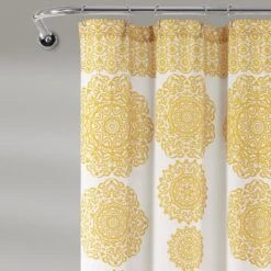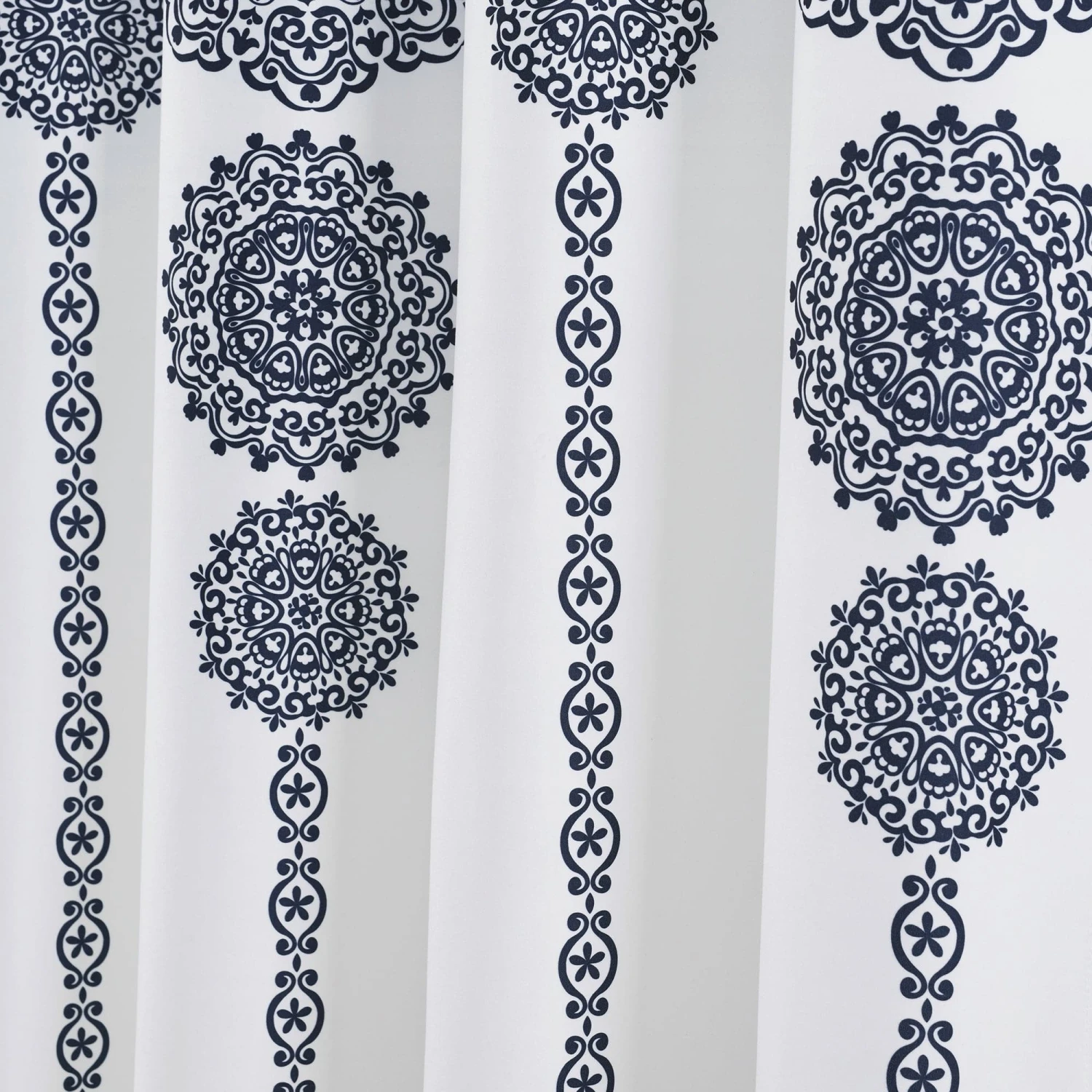 For your convenience, the Stripe Medallion Shower Curtain is machine washable and safe to tumble dry. You may also use an iron on light heat to release any wrinkles or folds from packaging.