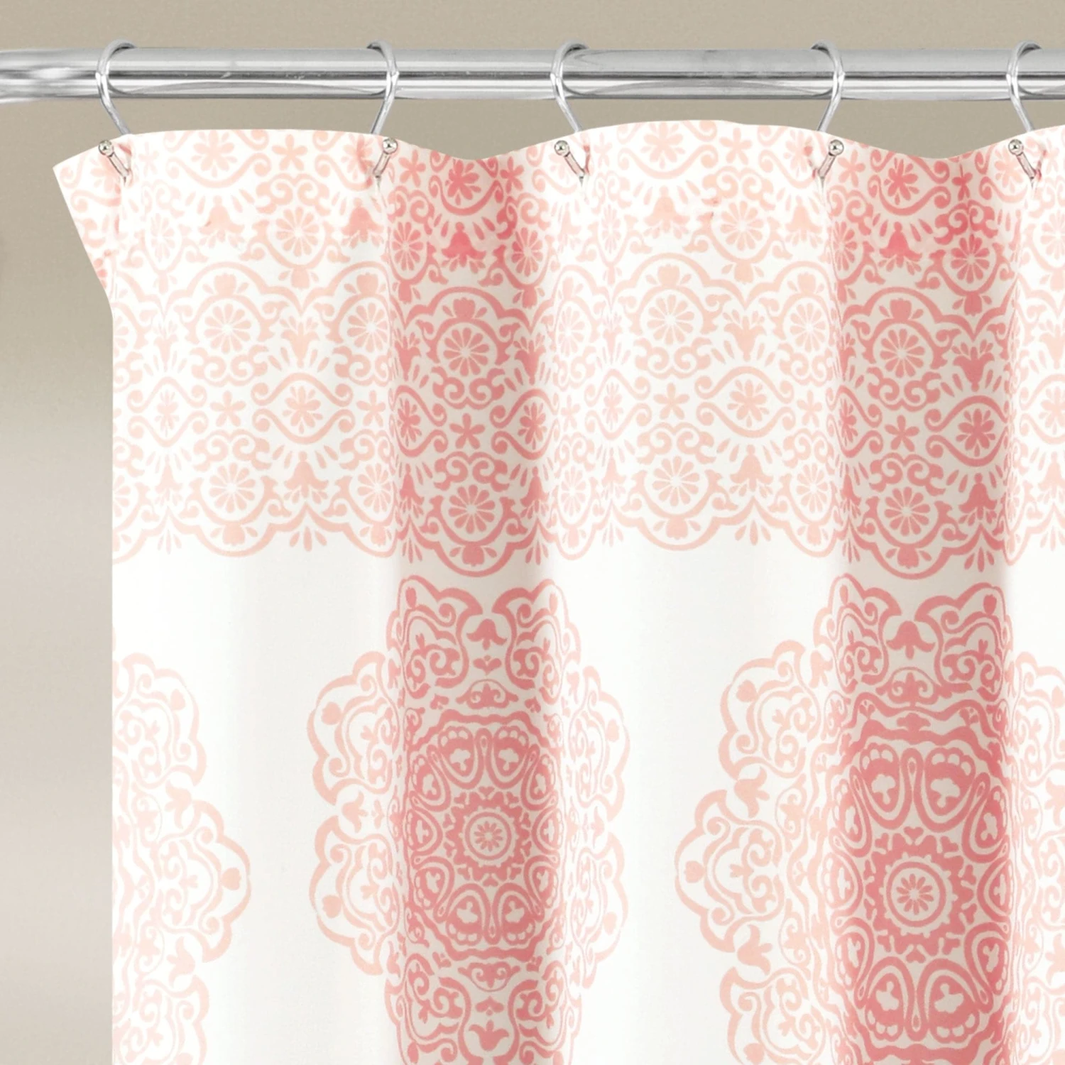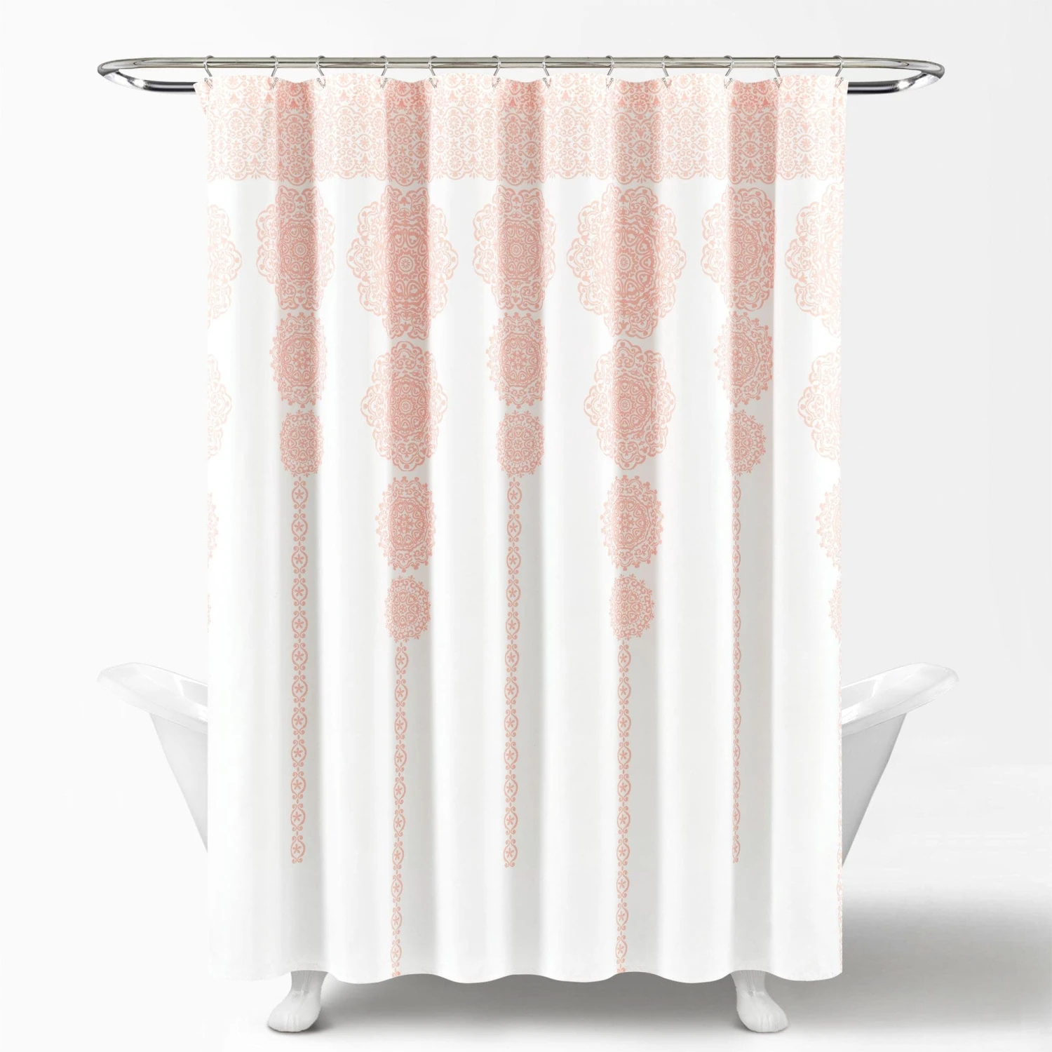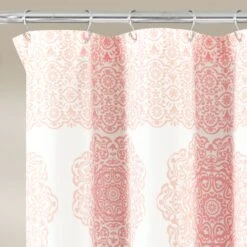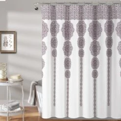 This Stripe Medallion Shower Curtain will instantly enhance the look of any bathroom. It features a stunning cascade of alternating long and short medallion motifs printed on micro fiber in your choice of seven great color options.