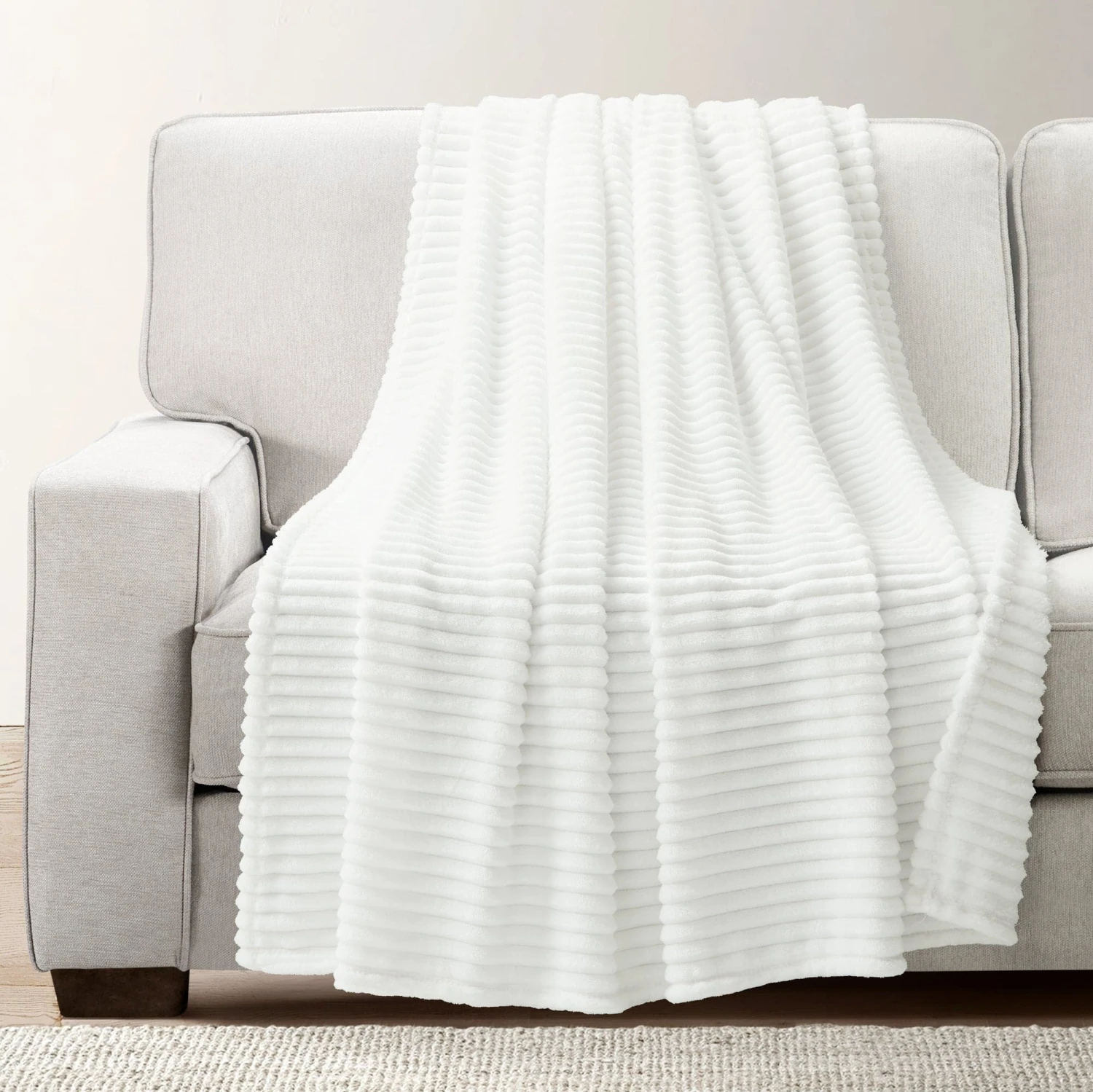 Accessorize your sofa, arm chair or bedroom by layering this warm and inviting Super Cozy Ultra Soft Ribbed Faux Fur Throw. The blanket is ribbed for a unique striped look.
