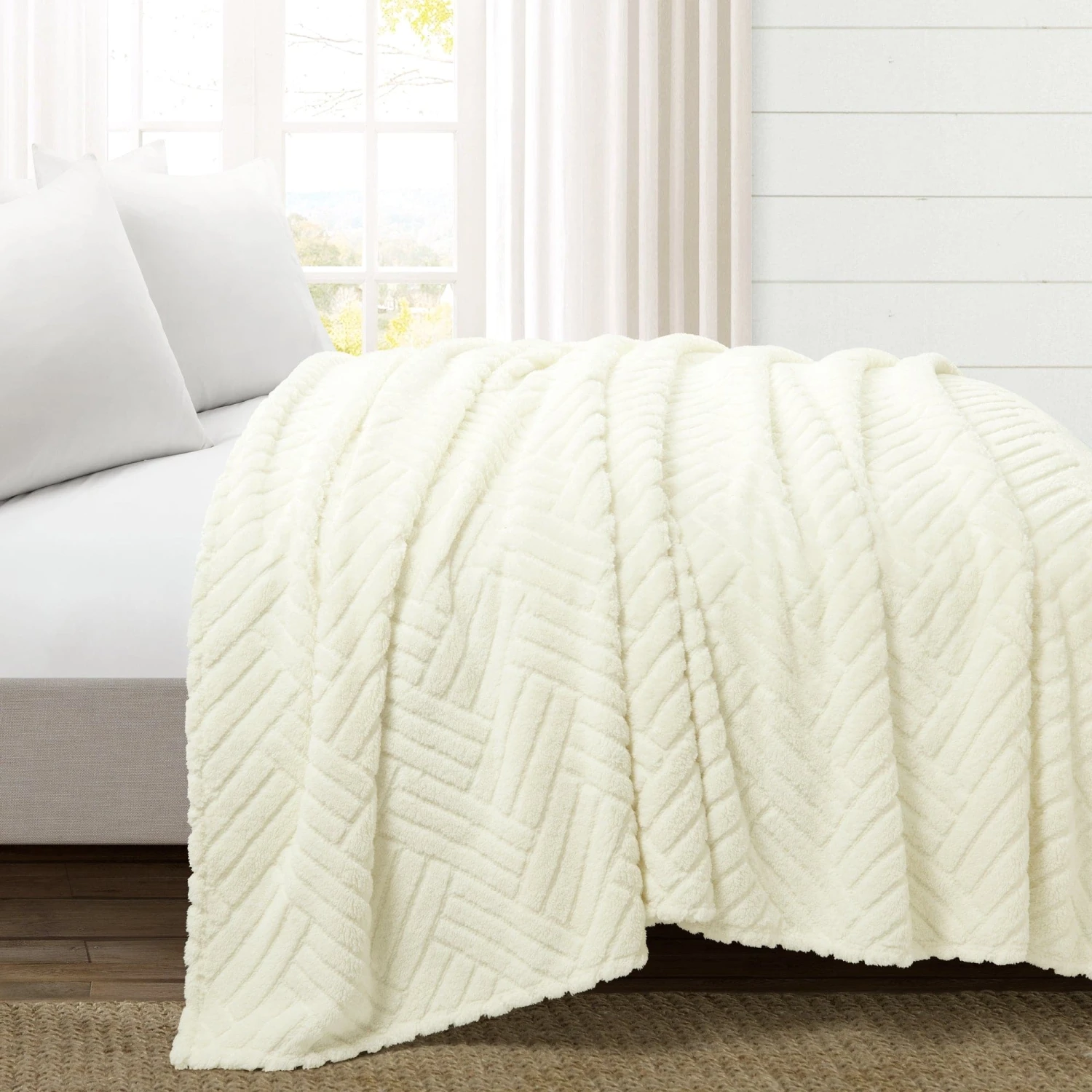 Get cozy this season with our super soft sherpa blanket. With its rich texture and eclectic look, this Super Cozy Ultra Soft Sherpa Jacquard Geo Blanket/Bedspread brings a homey style and loads of comfort. Made of luxurious feeling sherpa, there’s no question that it will keep you warm and snug. The simple herringbone style design in solid color easily fits into many interior design styles and can accessorize a bedroom or living room.