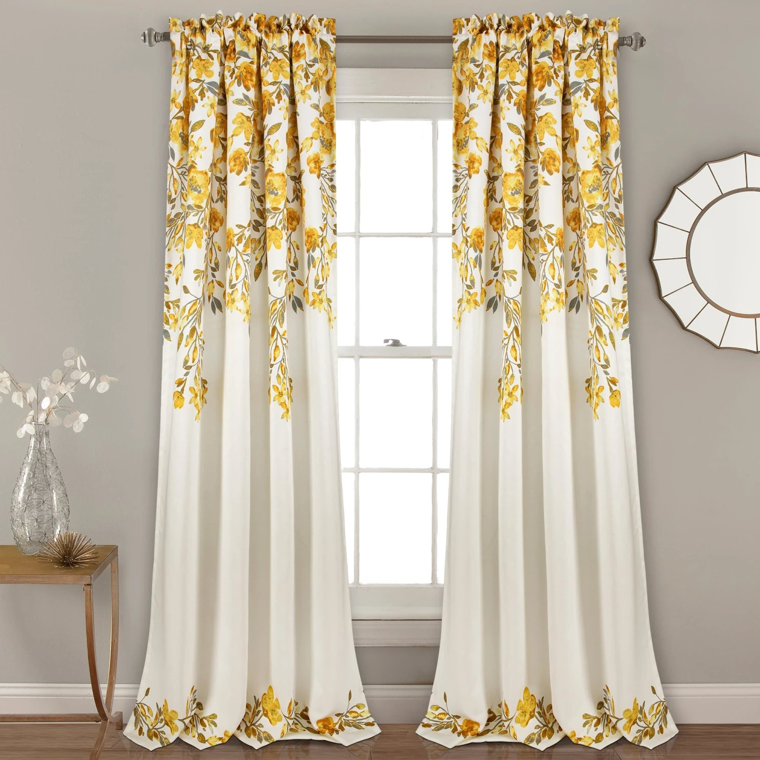 Update the look of your home with this beautiful Tanisha Light Filtering Window Curtain Panel Set. The floral style vine printed on light blocking fabric appears to be climbing from the top of the panel down toward the middle of the panel.