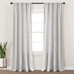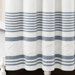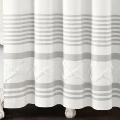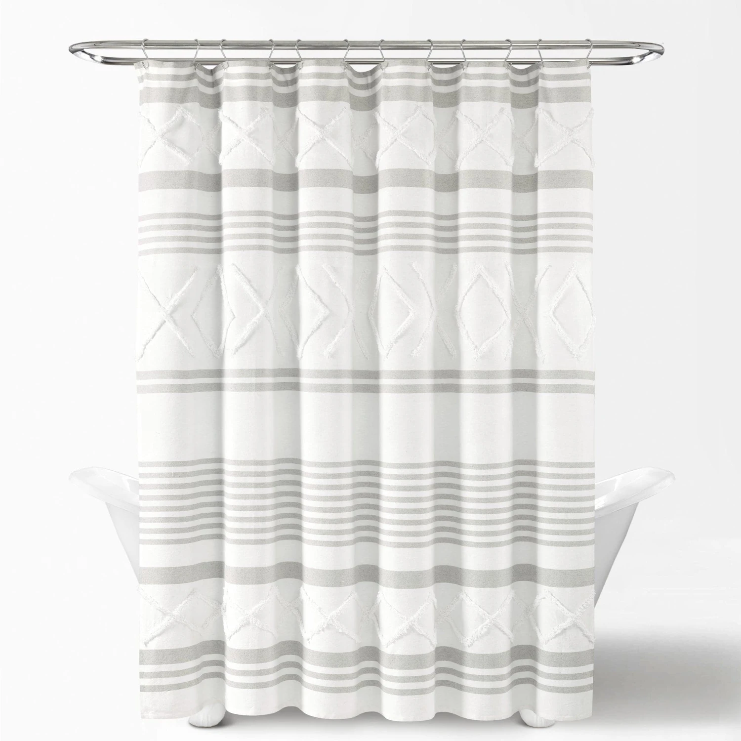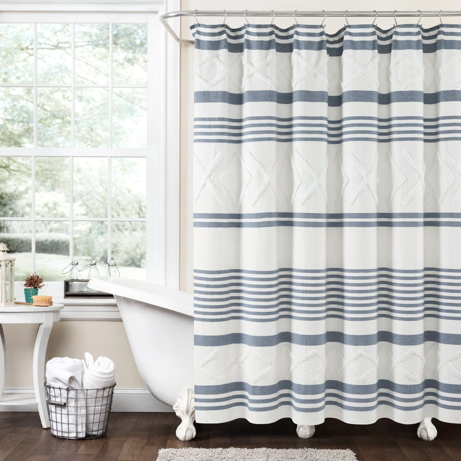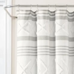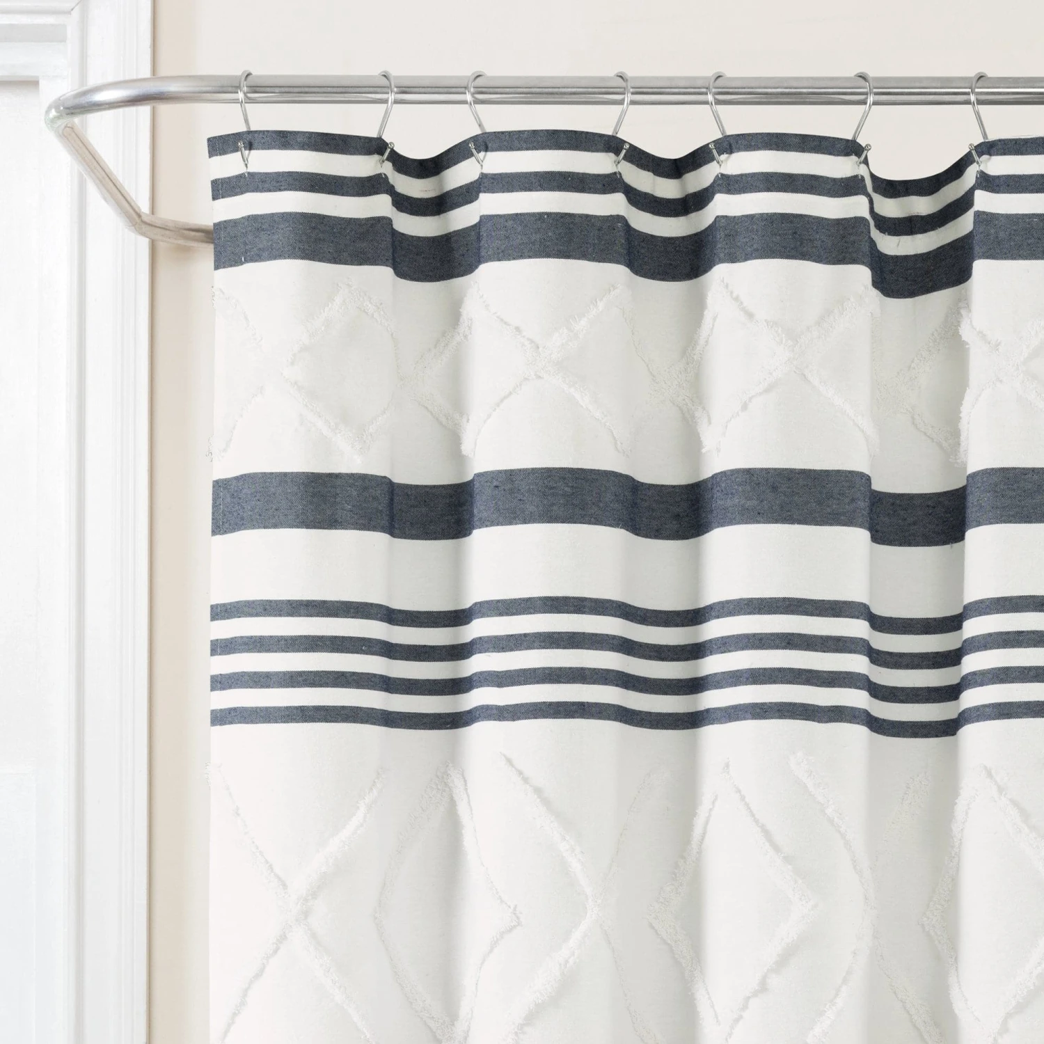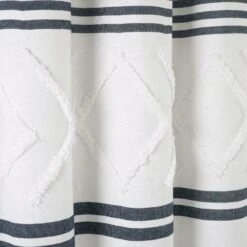 Take your bathroom from drab to fab with this super stylish Urban Diamond Stripe Woven Tufted Recycled Cotton Shower Curtain. Made of eco-friendly recycled cotton, this textured decorative curtain is a quick and simple way to add tons of chic style to your primary or guest bathroom.