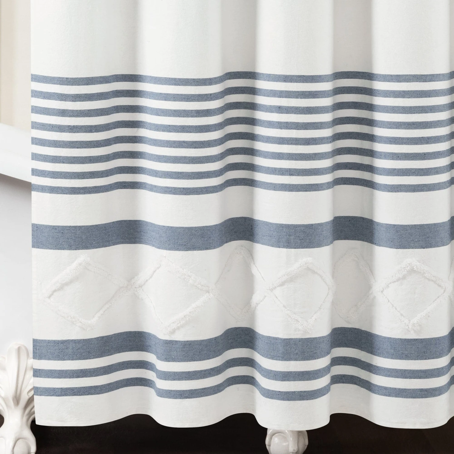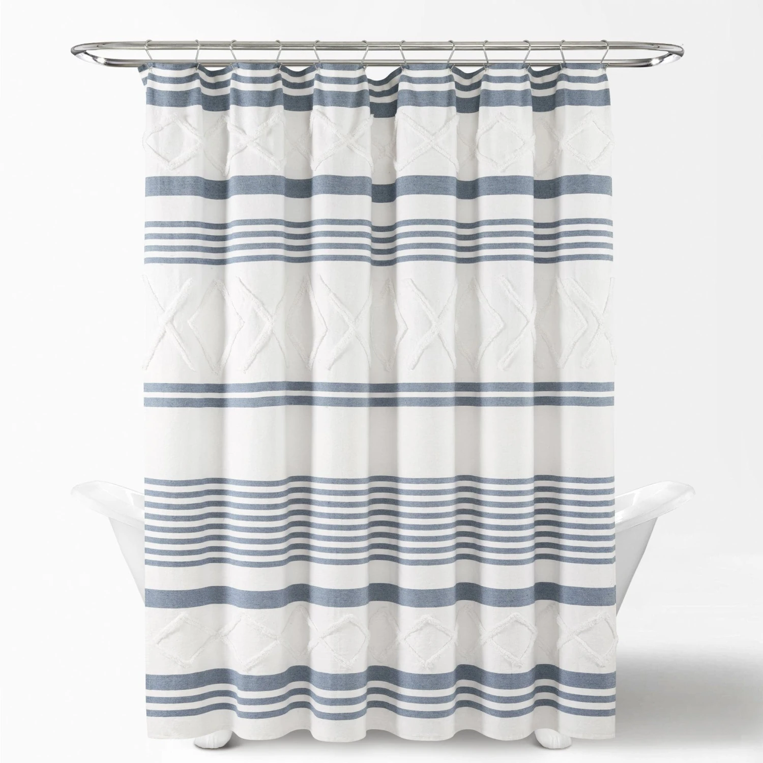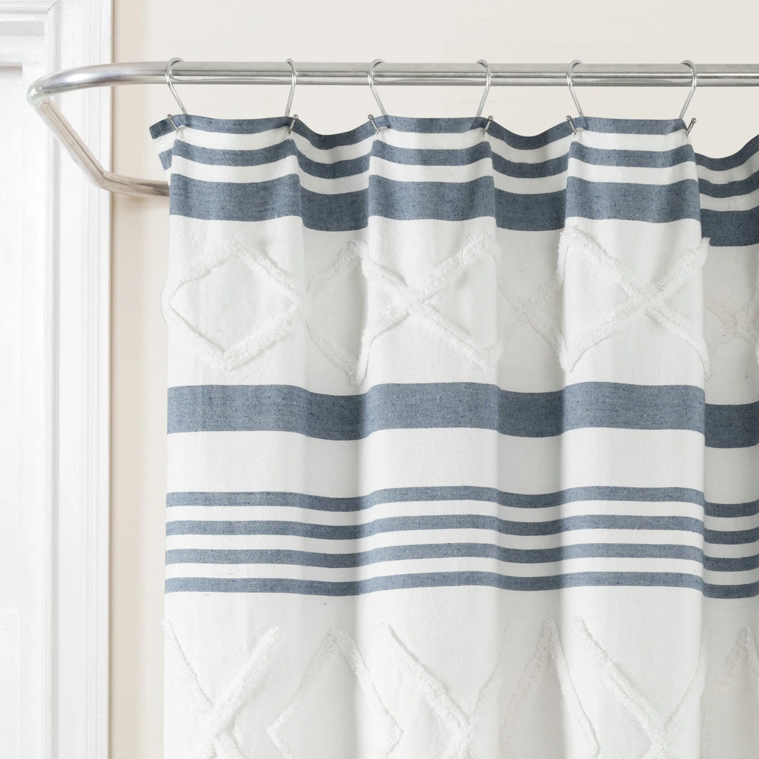 Start your morning routine in a relaxing, well-decorated bathroom when you hang this Urban Diamond Stripe Woven Tufted Recycled Cotton Shower Curtain. Tufted in a diamond pattern and featuring rows of stripes, this eco-friendly recycled cotton shower curtain will give your bathroom chic style.
