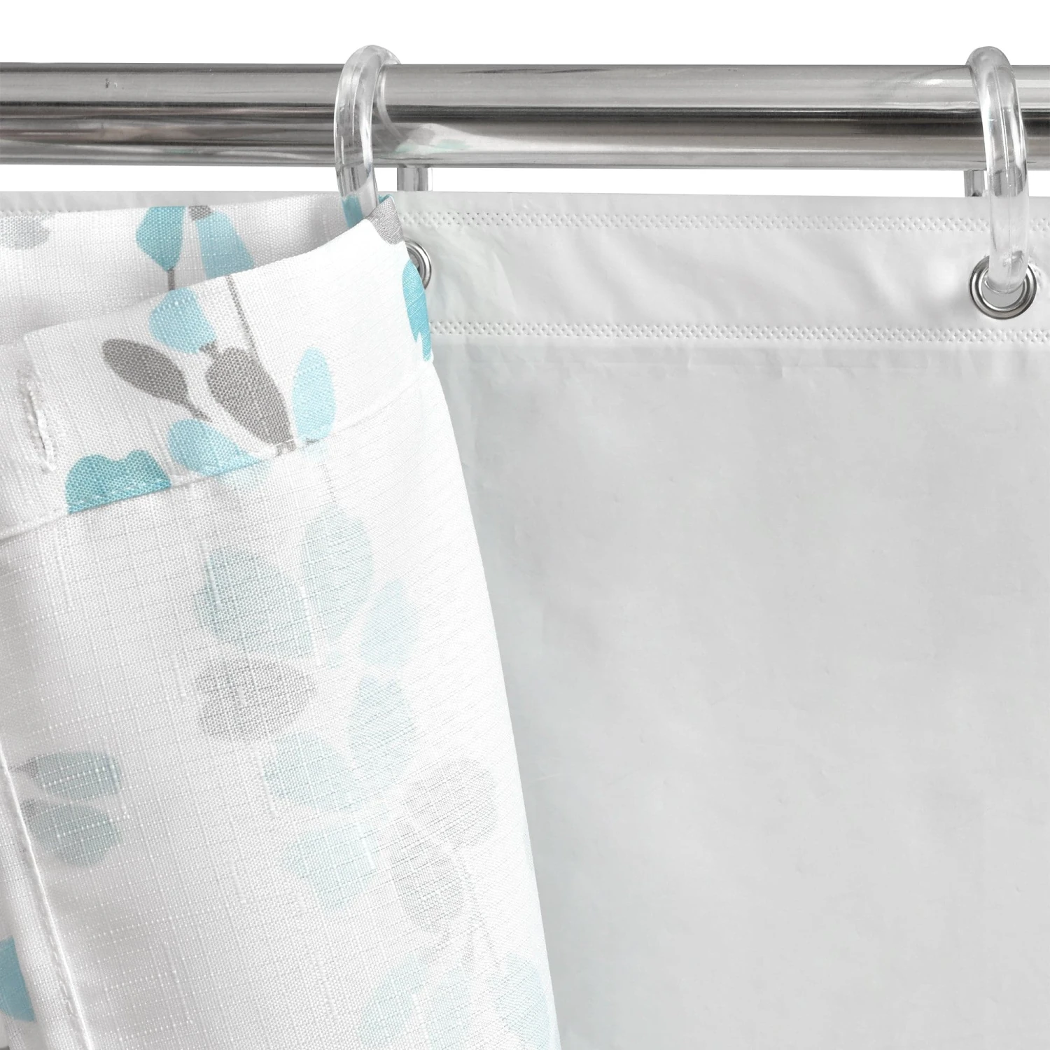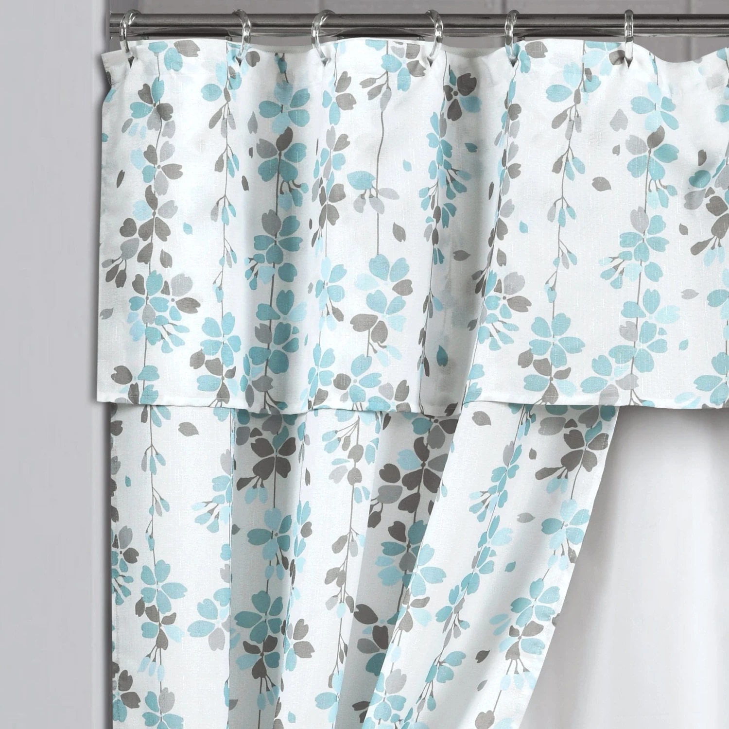 - Set Includes: 1 Shower Curtain, 1 PEVA Liner, 12 Rings, 2 Tie Backs