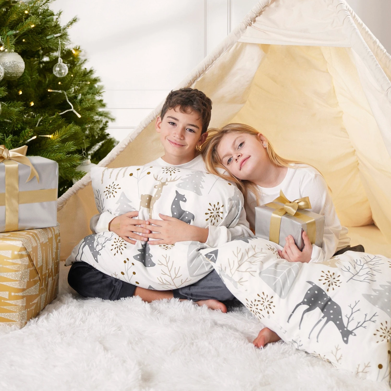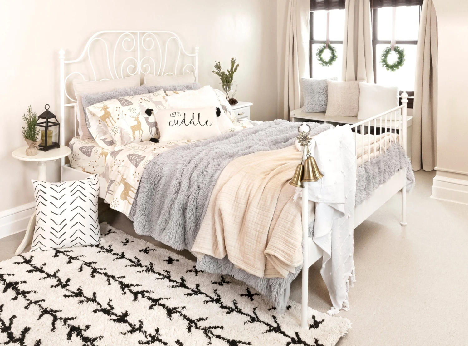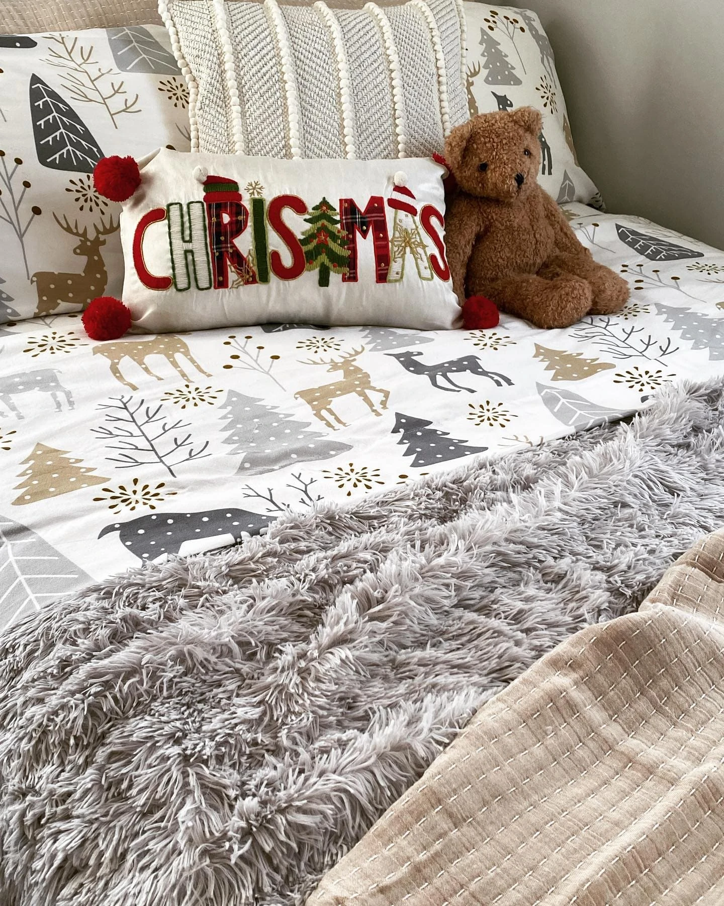 This seasonal bedding sheet set is the perfect way to get any (all) of your bedrooms into the holiday swing. Each piece of this Wonderland Soft Flannel Sheet Set is decorated with festive trees, deer and snowflakes. The cheerful energy of this set will inspire your next winter makeover in your primary bedroom, guest bedroom and kids’ bedrooms.